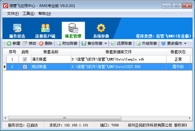 ????賬套管理實現賬套數據庫的集中管理,包括新建賬套、修改賬套屬性、刪除賬套、附加賬套、備份賬套、還原賬套和升級賬套功能。