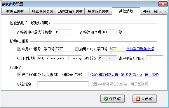 ????可以維護移動 App 服務參數、Web 服務參數以及性能參數,一般默認即可,不需要設置。