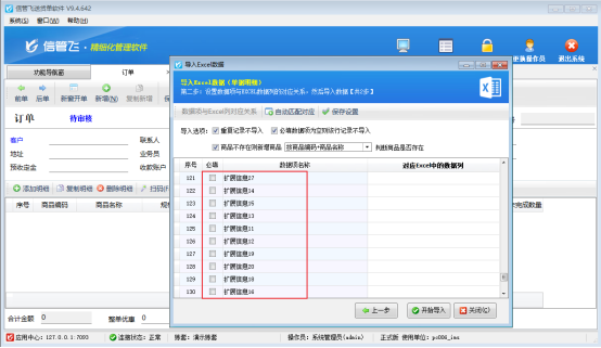 信管飛軟件支持通過Excel導入數據,通過Excel數據導入可以將數據方便快捷的導入到軟件中,省去了使用初期大量的數據的錄入所要消耗的時間及人力物力,并避免人為錄入的誤差,使數據錄入的簡單、準確、高效。然而,部分客戶使用的擴展信息字段比較多在導入明細數據時可能會遇到擴展信息10之后的擴展字段不顯示。下面我們以“信管飛送貨單軟件”為例,介紹下出現這種情況如何解決?     解決方法:在導入Excel數據界面,鼠標點擊空白地方右鍵,選擇刷新數據項,被隱藏的擴展信息及其他字段都會顯示出來,如:商品擴展信息1、擴