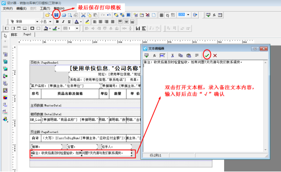 信管飛送貨單軟件、信管飛RMS、信管飛倉庫管理軟件都支持開單打印送貨單(銷售單),打印模板下方一般都會有備注信息或注意事項,不同的公司備注信息也不同,客戶可以自定義修改模板的備注內容,下面介紹一下如何修改固定的備注字樣。    以送貨單軟件為例,選擇一個送貨單單據,選擇“打印”—》“打印格式設計”—》“設計格式”進入打印模板設計器