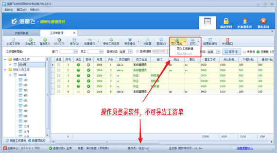 信管飛軟件支持設置多個可登錄操作員,可不同人員登錄軟件進行操作開單。在員工信息界面,可登錄員工對應的可登錄狀態顯示勾選,如下圖所示:     如何設置員工“李拓”可登錄狀態取消勾選?在功能導航窗點擊“系統管理”—》“操作員及授權”界面。選擇操作員“李拓”,點擊工具欄“刪除操作員”,刪除成功后員工不能再登錄軟件,如下圖所示: