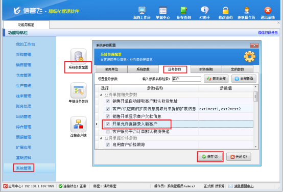 此文章相關(guān)演示視頻:開(kāi)單界面無(wú)法直接錄入新客戶,如何解決? 在如今快節(jié)奏的商業(yè)世界里,高效便捷的業(yè)務(wù)管理軟件是企業(yè)運(yùn)營(yíng)的得力助手。信管飛系列軟件憑借其強(qiáng)大的功能,在采購(gòu)及銷(xiāo)售開(kāi)單時(shí)支持直接錄入新客戶,大大節(jié)省了業(yè)務(wù)處理時(shí)間,提升了工作效率,深受眾多企業(yè)
